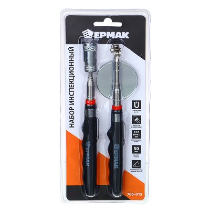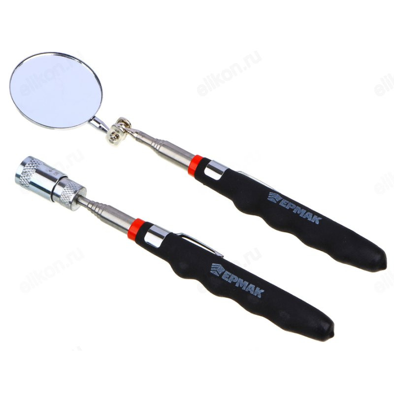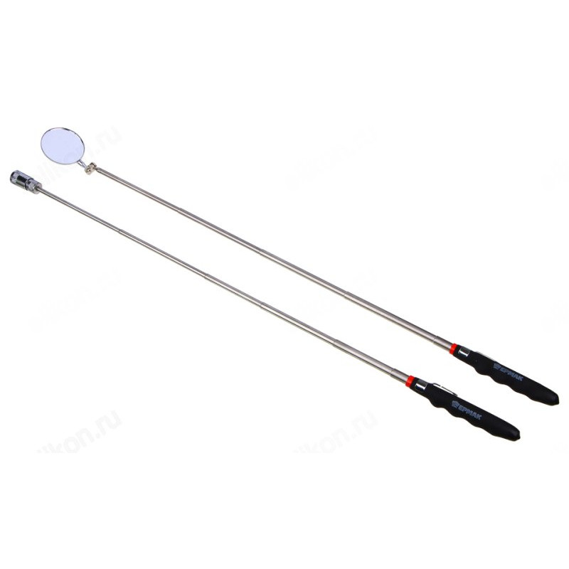 ЕРМАК Набор инспекционный, зеркало 50мм, магнит 2, 3кгс. 190-810мм- это телескопическое зеркало, которое применяется для диагностики и выявления дефектов. Смотровое зеркало помогает рассмотреть повреждение деталей на расстоянии в узких и труднодоступных местах.Досмотровое инспекционное зеркало подойдет для:• Охраны; • Таможенной службы; • Службы безопасности; • Строительства; • Осмотра автомобилей ( днища автомобиля) ;