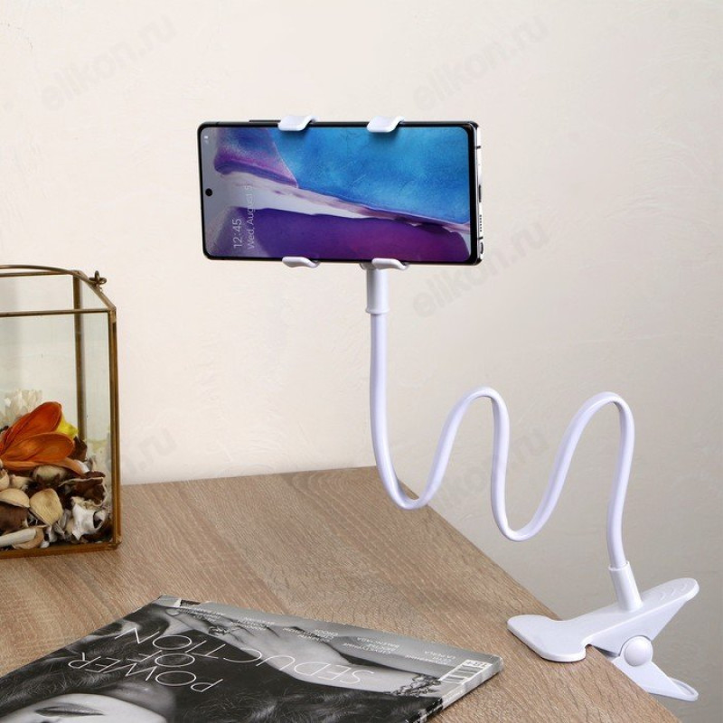 Держатель-прищепка, гибкий, регулируемый - вращение 360 градусов, подойдет для смартфона 3-7", длинна достигает 80 см, ширина держателя 12 см