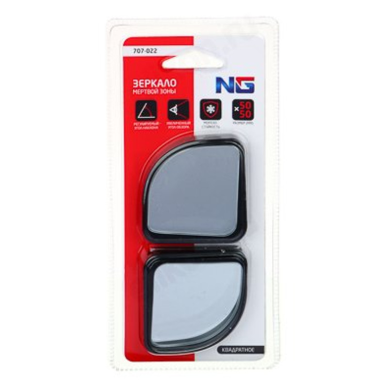 Квадратное зеркало мертвой зоны NG черного цвета 50х50 мм поможет лучше следить за дорожной ситуацией во время вождения, обеспечивая дополнительную безопасность на дороге. Имеет регулируемый угол наклона, а также увеличенный угол обзора, что позволяет вовремя увидеть мотоциклы, велосипеды и другой транспорт, которые часто не просматриваются через штатные зеркала заднего вида. Зеркала морозостойкие, поэтому могут использоваться в любой сезон. 2 штуки в комплекте.