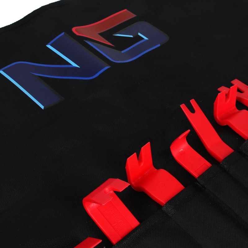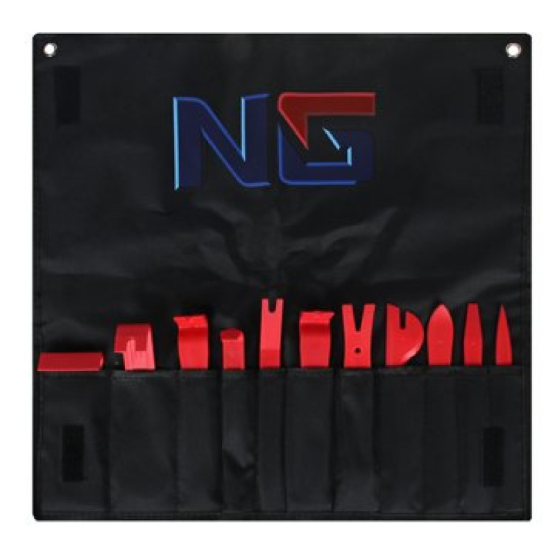 Набор пластиковых съемников для панелей салона автомобиля NG используется для демонтажа панелей облицовки. Включает 11 предметов и удобный тканевый пенал-органайзер с индивидуальным карманом для каждого изделия. Инструменты выполнены из высокопрочного пластика, который легко справляется с проведением демонтажных работ и не подвержен растрескиванию.