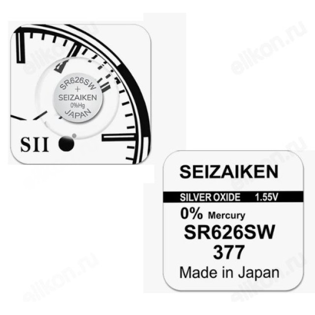 SEIZAIKEN SR-626 SW/377 - батарейка из оксид-серебра для наручных часов и других устройств с малым