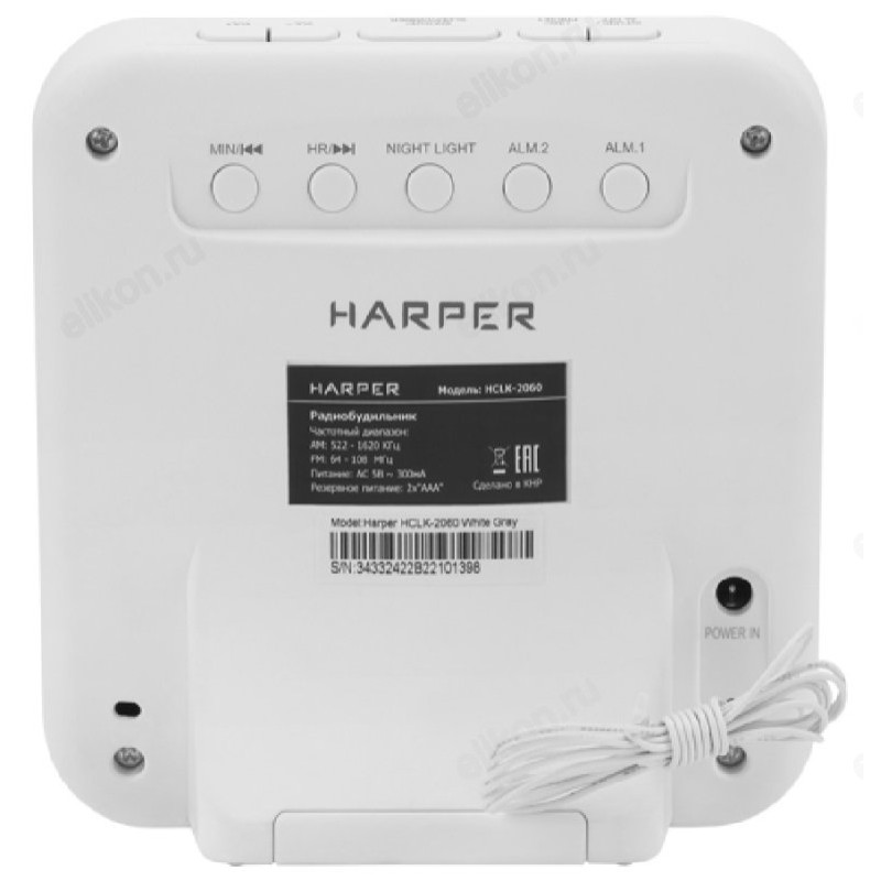 Радиобудильник HARPER HCLK-2060 white gray-white led