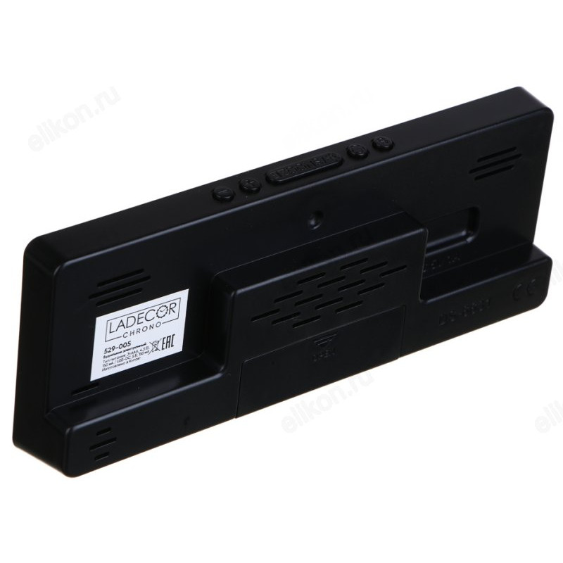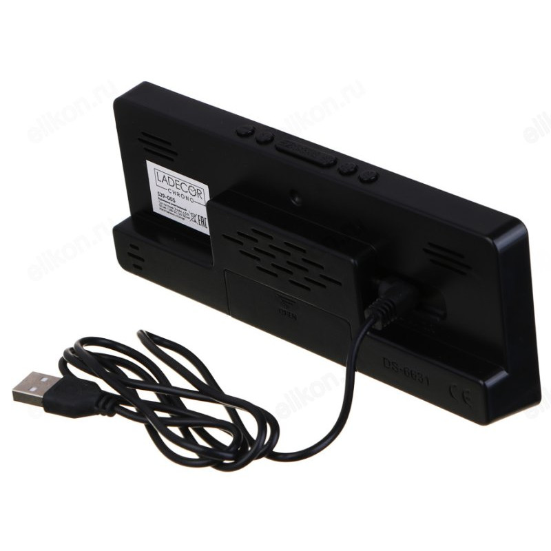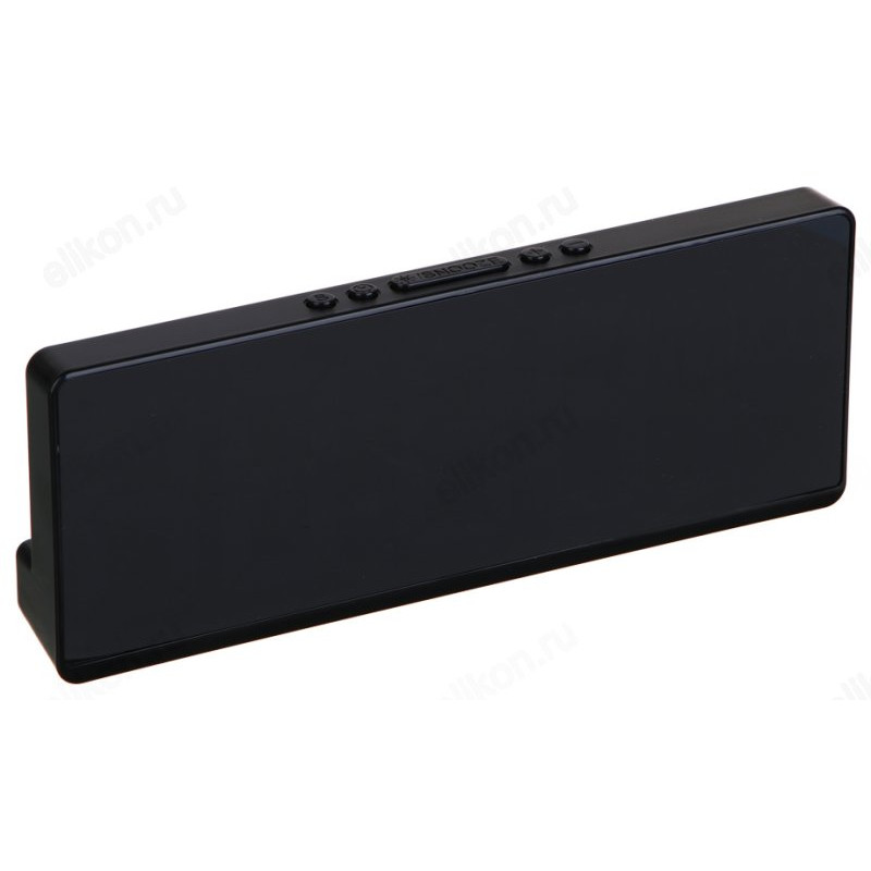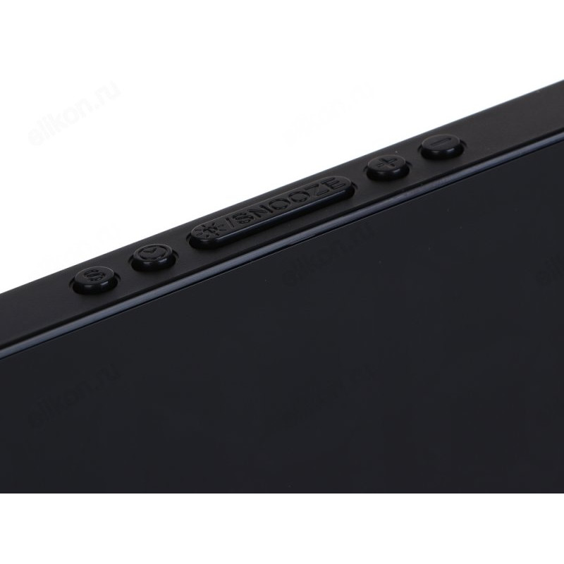 Черный электронный будильник с подсветкой имеет современный дизайн, смотрится строго и солидно,
