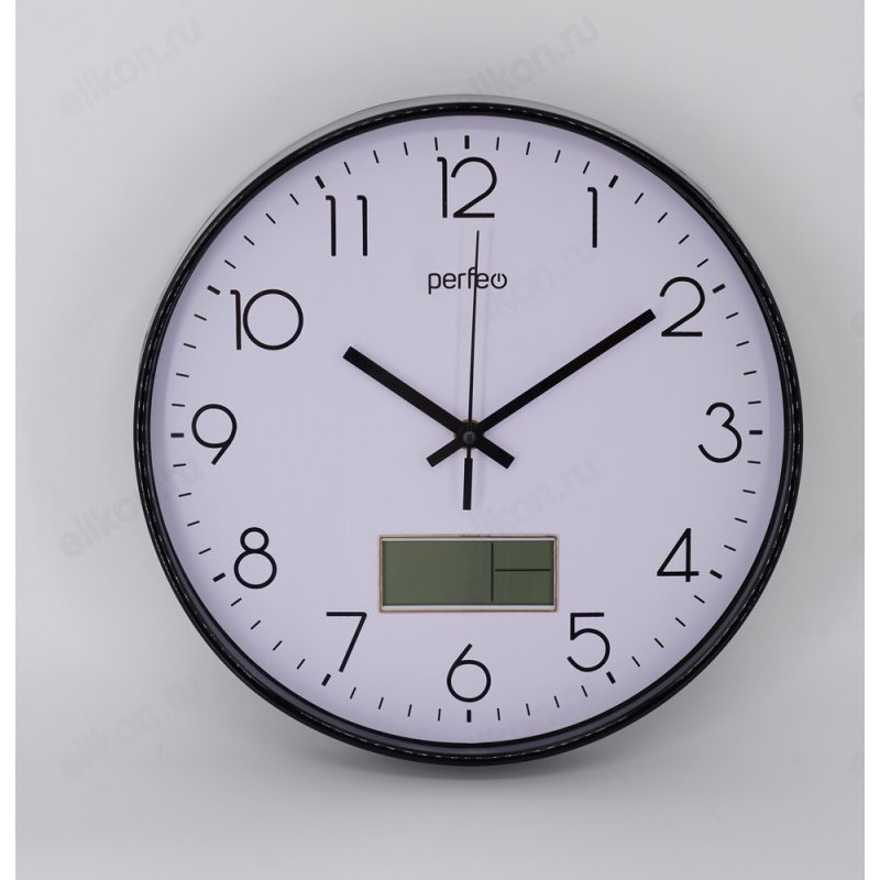 Часы настенные Perfeo PF-WC-023(С1) PF_E2066 черн/бел
