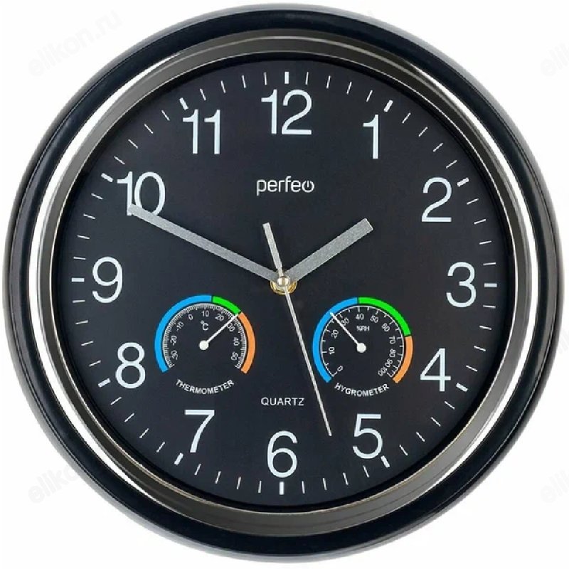 Часы настенные Perfeo PF-WC-012, пластик, черные