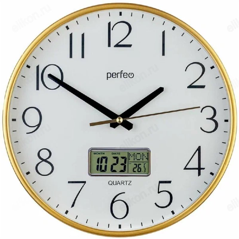 Часы настенные Perfeo PF-WC-013, пластик, золотистые