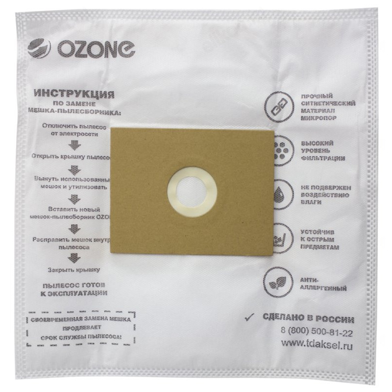 Одноразовые мешки-пылесборники Ozone изготовлены из многослойного синтетического материала,
