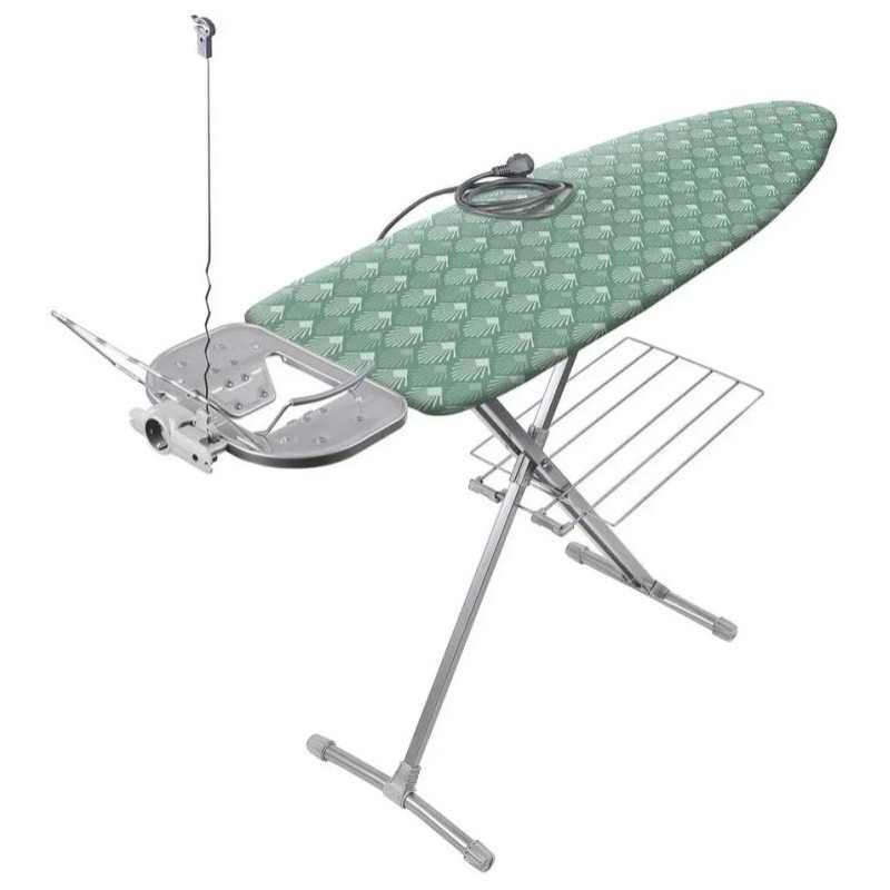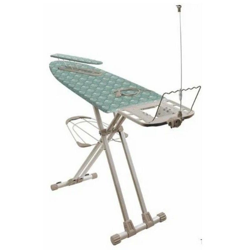 1220х400мм, металл, подставка под утюг, электроудлинитель, плавная регулировка по h до 90см, колеса на опоре для легкого пермещения, фиксатор опор в сложенном виде, съемный чехол хлопок
