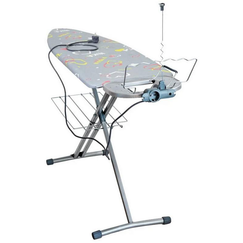 1220х400мм, металл, подставка под утюг, электроудлинитель, плавная регулировка по h до 95см, колеса на опоре для легкого пермещения, фиксатор опор в сложенном виде, съемный чехол хлопок