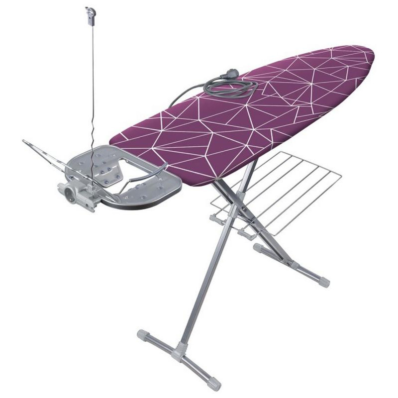 1220х400мм, металл, подставка под утюг, электроудлинитель, плавная регулировка по h до 95см, колеса на опоре для легкого пермещения, фиксатор опор в сложенном виде, съемный чехол хлопок