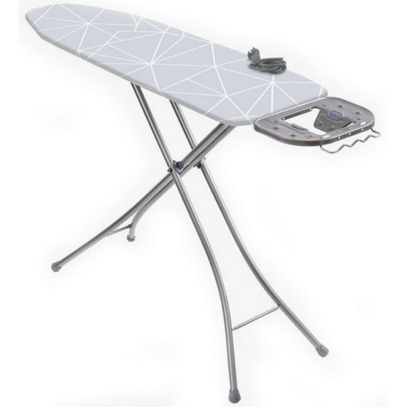 1220х400мм, металл, EUROподставка под утюг с термосиликоном, электроудлинитель, плавная регулировка по h до 100см, подрукавник, полка д/белья, электросоединитель 1.9м, розетка с держателем д/провода утюга, съемный чехол хлопок