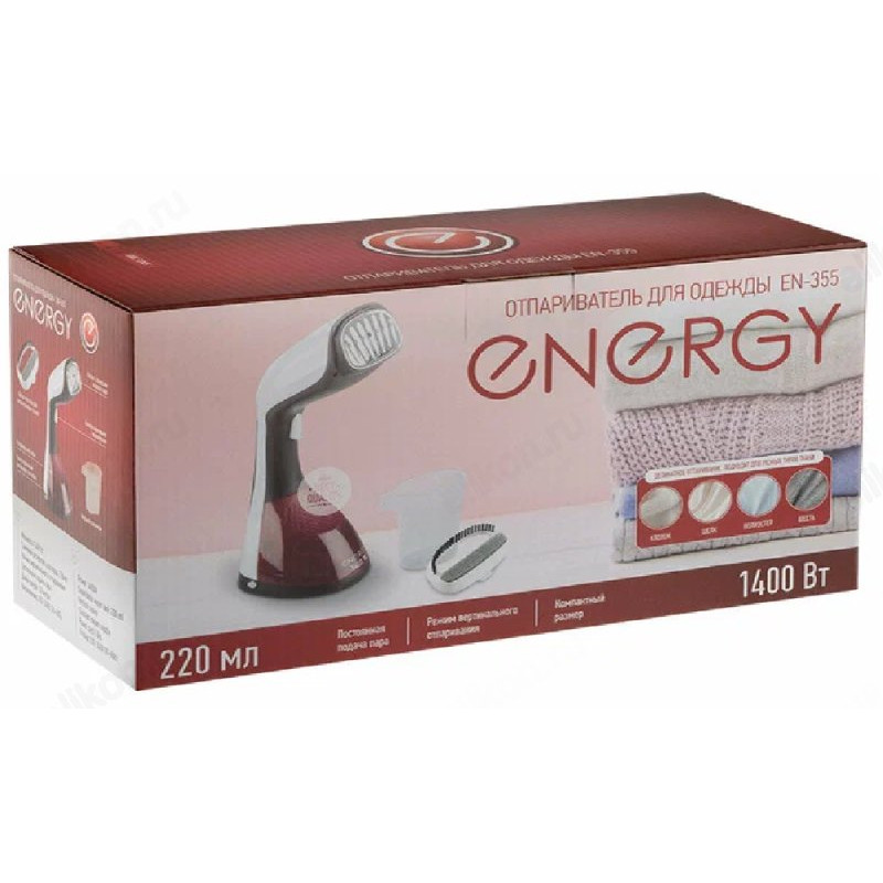Отпариватель ручной ENERGY EN-355, 1200 - 1400 Вт ,0.220 л, бордовый