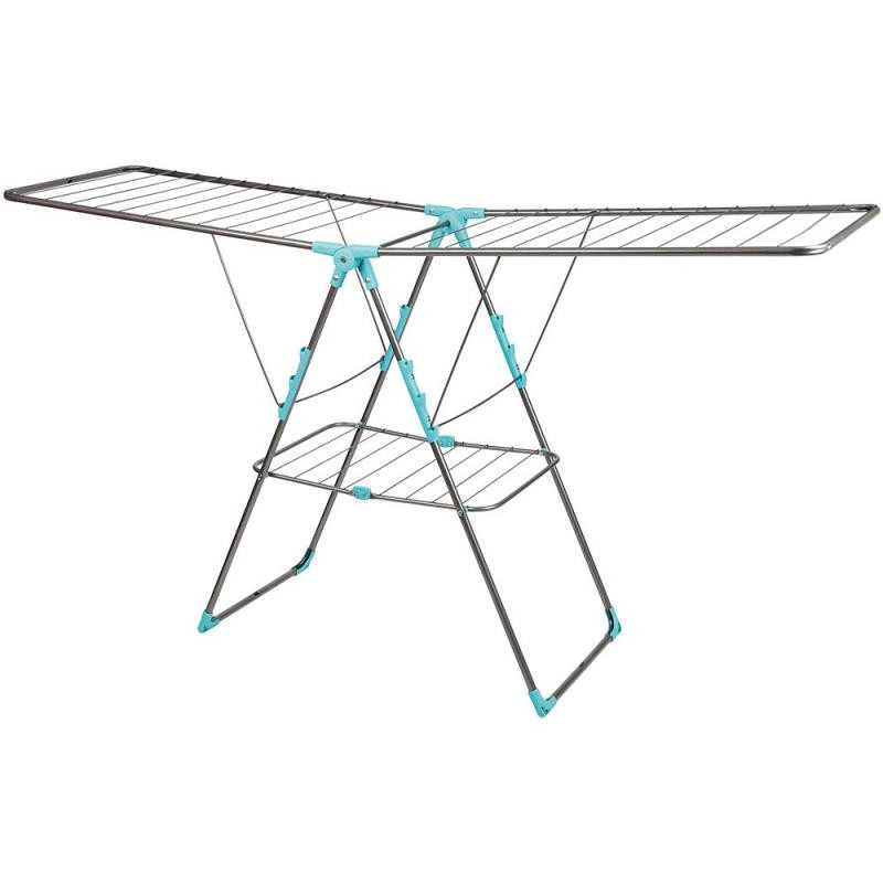 179х98х51см, металл/пластмасса, серебристая, длина сушильного полотна 21м, двухуровневая, максимальная нагрузка 15кг