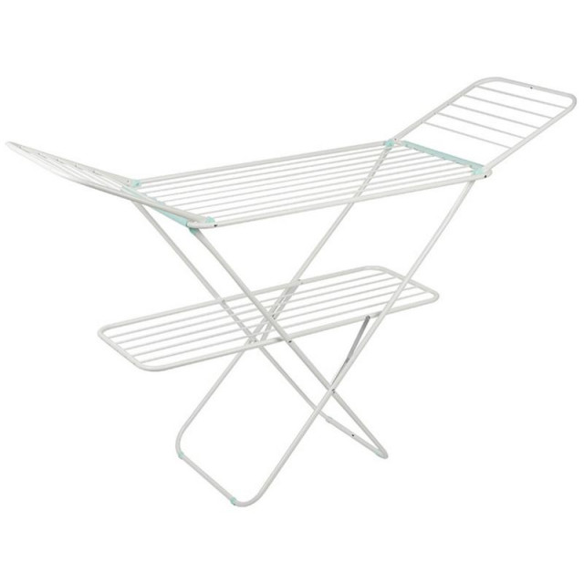 177х55.5х110см, в сложенном виде 131х55.5х6см, диаметр прутьев 6мм, диаметр трубок каркаса 16мм, макс. рабочая длина 30м, макс. нагрузка 20кг, окрашенный металл/пластмасса