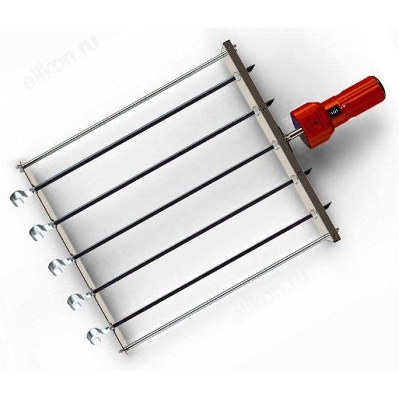 Шашлык на костре стал традиционным видом отдыха в нашей стране. Но каждый из нас сталкивался с проблемой, когда один жарит, а остальные веселятся, нередко шашлык подгорает или остается не прожаренным. Решение проблемы нашел отечественный завод УЗБИ и создал автоматический мангал с пятью вращающимся шампурами. Каркас из стали оснащен пятью шампурами и двигателем, работающим от батарейки типа 1, 5 V, обеспечивающей работу прибору на 5-6 часов. Шампуры приводятся в движение при помощи включателя на ручке.