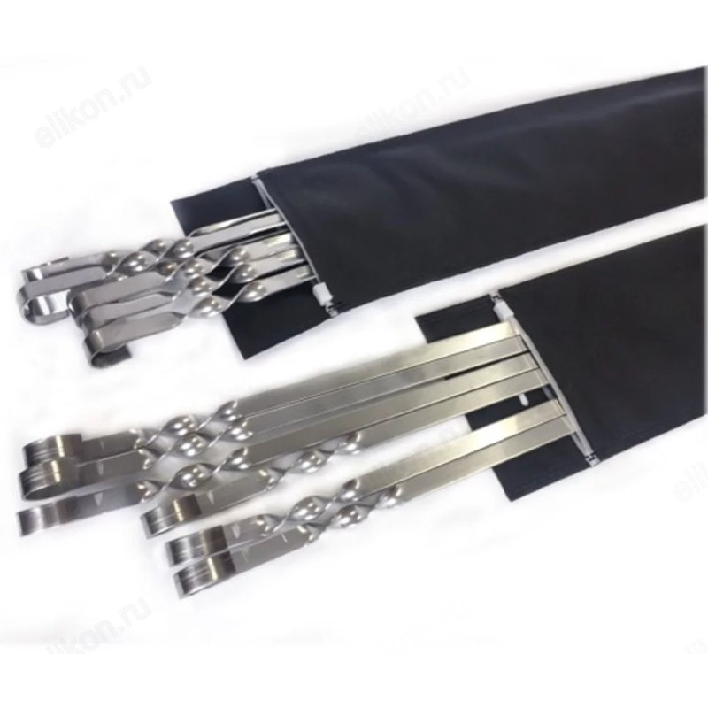Используется для жарки на мангале и огне. Угловой профиль выдерживает больший вес порций продуктов. Спиралевидная ручка надежно удерживает положение шампура на мангале, позволяя равномерно прожаривать мясо, рыбу, овощи. Упакованы в чехол по 6 шт. для безопасного хранения и транспортировки.