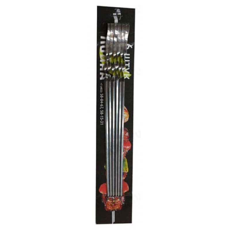 Походный набор шампуров изготовлен из нержавеющей стали, отличается от других металлов отличной износостойкостью, пригодны для термической обработки, исключая попадание вредных и тяжелых металлов в мясо.