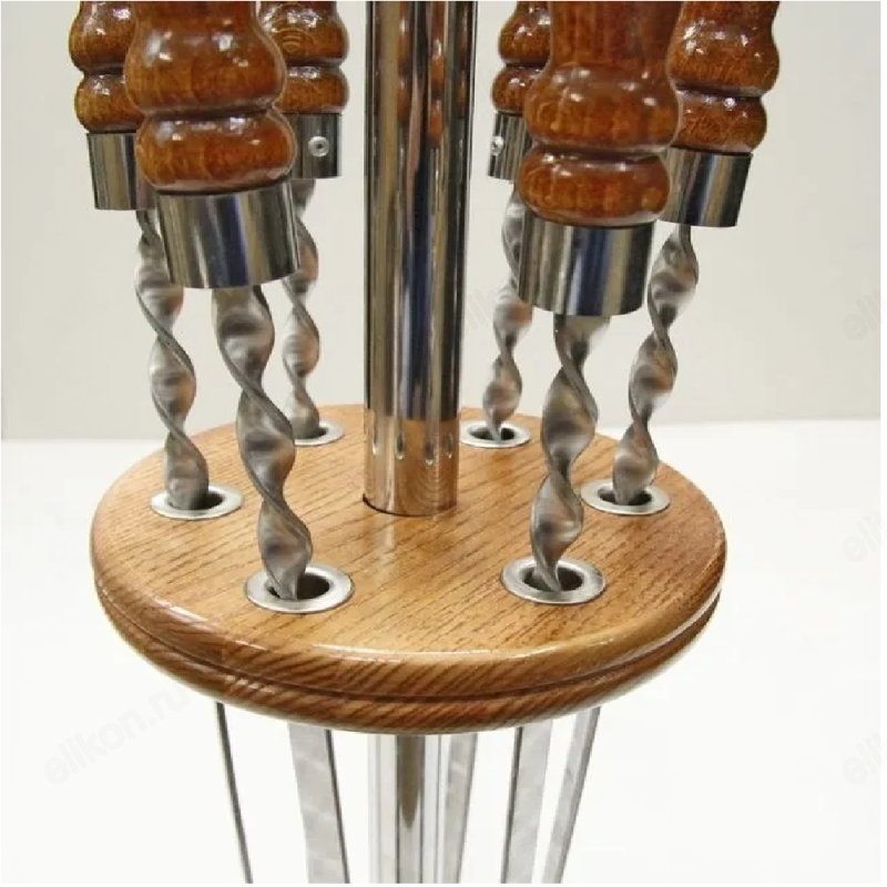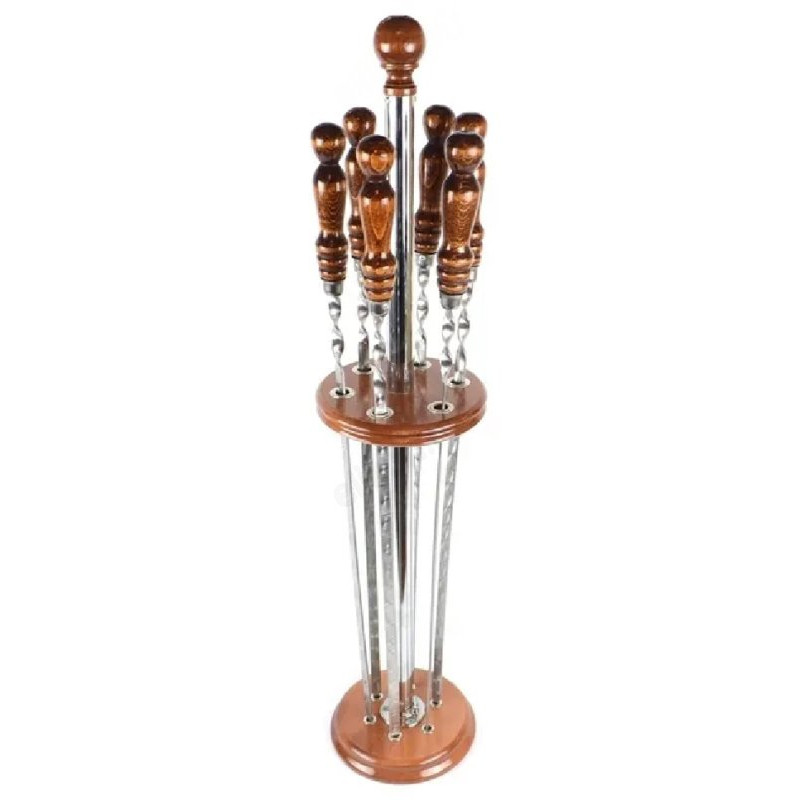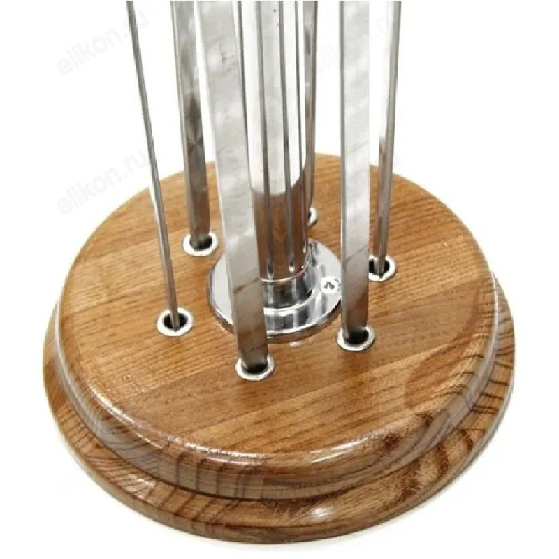 Вертикальная подставка для хранения шампуров, отлично подойдет для украшения зоны барбекю! Подставка выполнена из лакированного дерева. Подставка рассчитана на 6 стандартных шампуров. Шампура не входят в комплект. Держатель прост и удобен в использовании.