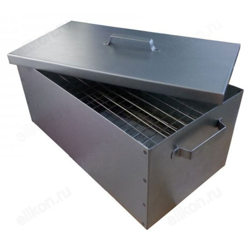 Коптильня горячего копчения. Прочный металл. 2 яруса решеток для копчения. Поддон для сбора жира. Можно готовить на углях и на костре. Габариты 350х250х200