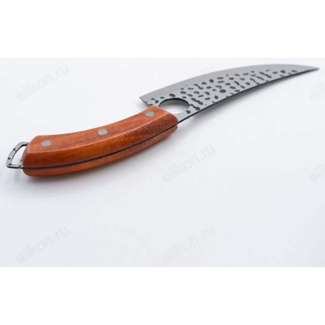 Рукоять выполнена из дерева и металла, что делает её устойчивой к влаге.