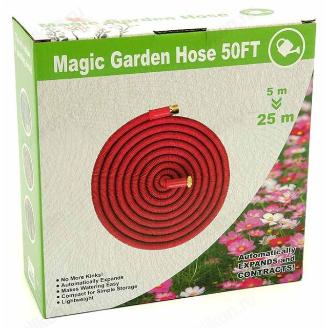 Шланг садовый растягивающийся с латунными наконечниками 5-25 М + насадка-распылитель
