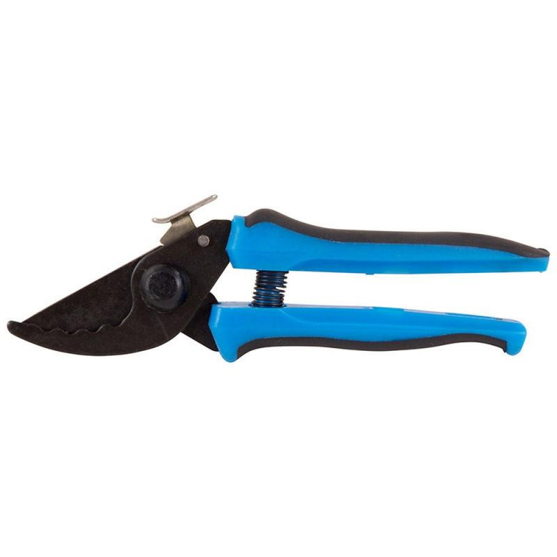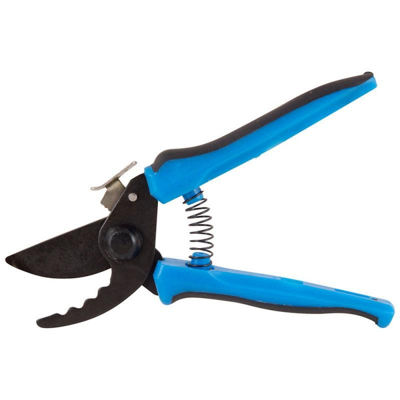 190мм, для обрезки садовых растений, сталь/полипропилен, оксидированное покрытие лезвий, двухцветная ручка с эластомером, органическая, рука по такой поверхности не скользит, металлическая защелка, режущая способность до 10мм сырой древесины