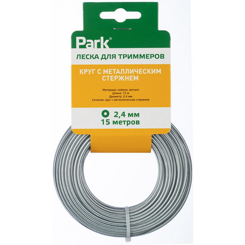Леска для триммеров 2.4мм, 15м, круг с металлическим стержнем PARK ECOS 990625