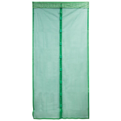 полиэстер 100%, плотность 45г/кв.м, 100х210см, на магнитах (в комплект входят кнопки, двусторонний скотч для крепления к дверному проему, ламбрекен), зеленый цвет