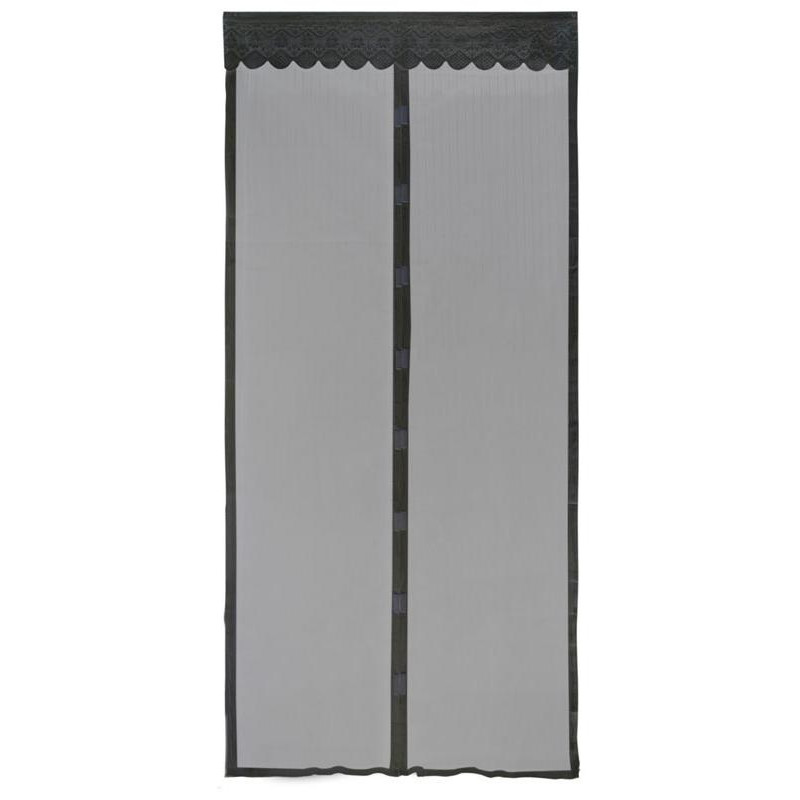 полиэстер 100%, плотность 45г/кв.м, 100х210см, на магнитах (в комплект входят кнопки, двусторонний скотч для крепления к дверному проему, ламбрекен), черный цвет
