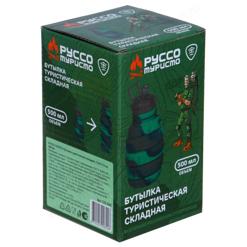 Бутылка туристическая складная РУССО ТУРИСТО 500мл 123-042