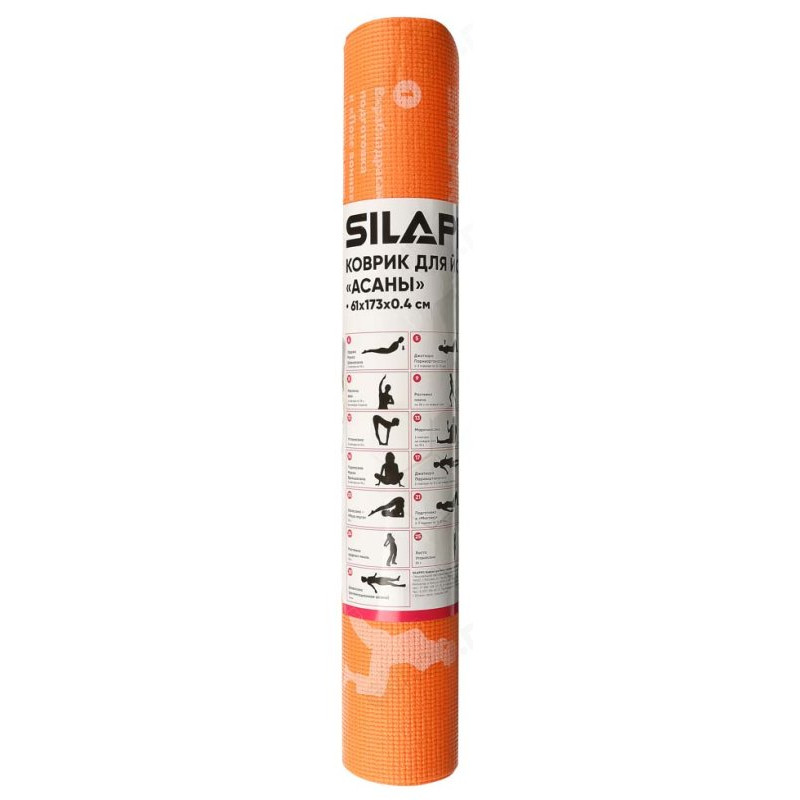 Коврик SILAPRO 191-027 для йоги "Асаны", 61х173х0,4см, ПВХ, 4 цвета