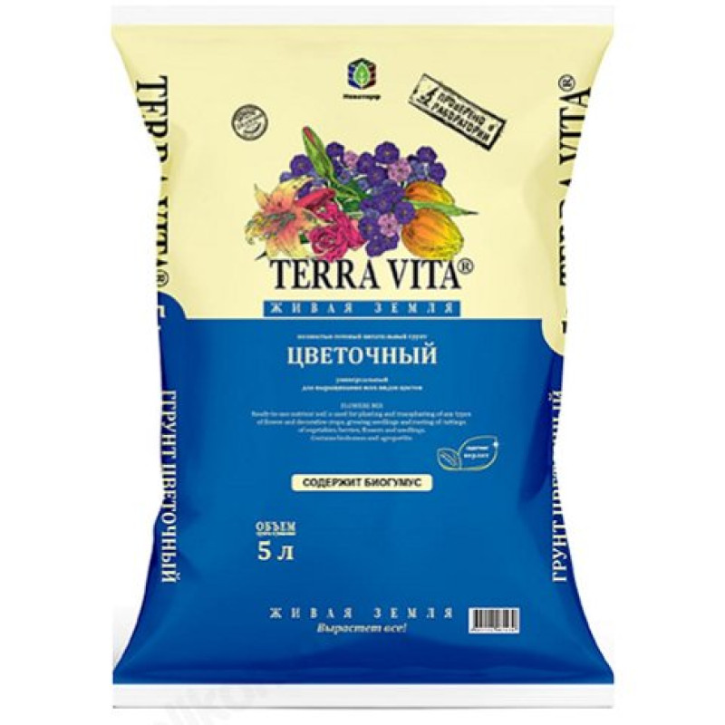 Грунт Живая земля 5 литров цветочный, объединяет в себе все необходимые свойства для правильного развития растений.