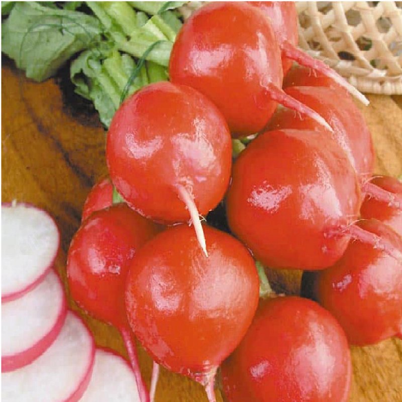 Розетка растения компактная, а корнеплоды имеют красный округлый вид с гладкой поверхностью и диаметром около 3 см.
