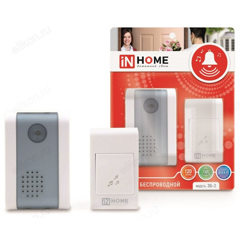 Звонок беспроводной ЗБ-2, 32 мелодии, 120м с кнопкой, бело-серый IN HOME