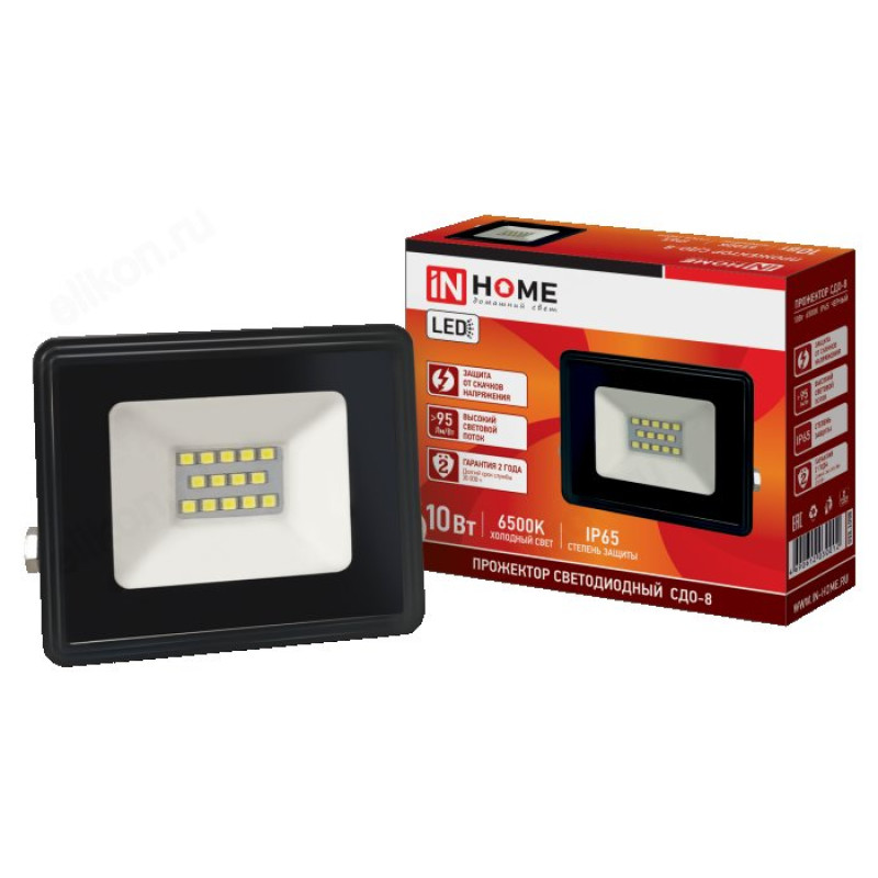 Герметичные светодиодные прожекторы СДО-8 от ТМ «IN-HOME» предназначены для внешнего (наружного) освещения различных открытых территорий – производственных объектов, автостоянок, складов, торговых и выставочных площадей. Их можно установить на фасадной стене, парапете или любой другой ровной поверхности. LED-прожекторы на современных светодиодах характеризуются высокой светоотдачей (более 95 лм/Вт). Ручка прожектора может осуществлять полный поворот на 180°,