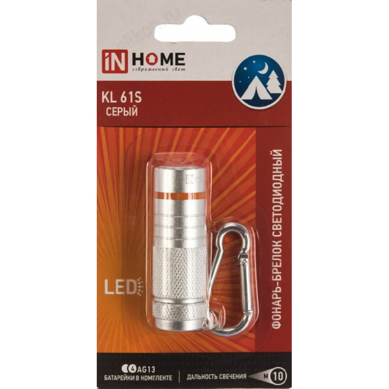 Фонарь-брелок KL 61S LED алюминиевый СЕРЫЙ IN HOME батарейки в комплекте
