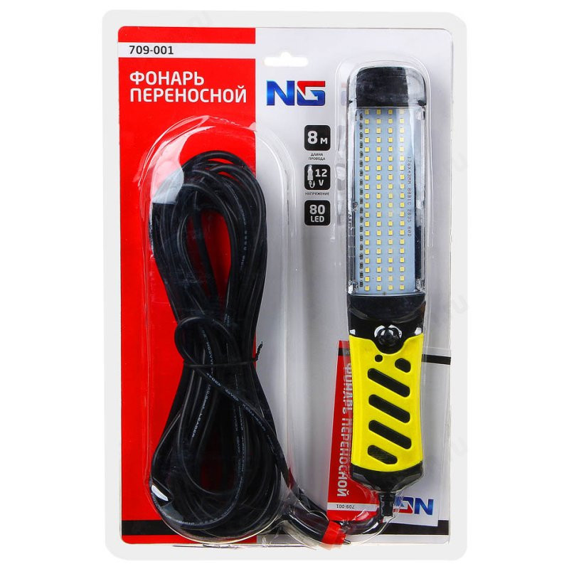 В поездках за город на автомобиле дополнительное освещение может понадобиться в любой момент. Светодиодный переносной фонарь NG – это прибор, который точно будет не лишним в машине. Фонарь можно зафиксировать в вертикальном положении, повесив за крючок. Работает от прикуривателя и имеет провод 8 м, что расширяет зону его использования. Будет незаменим при поломке авто в темное время суток, а также в качестве кемпингового светильника. 80 LED-диодов выдают яркое свечение. Напряжение – 12 V.