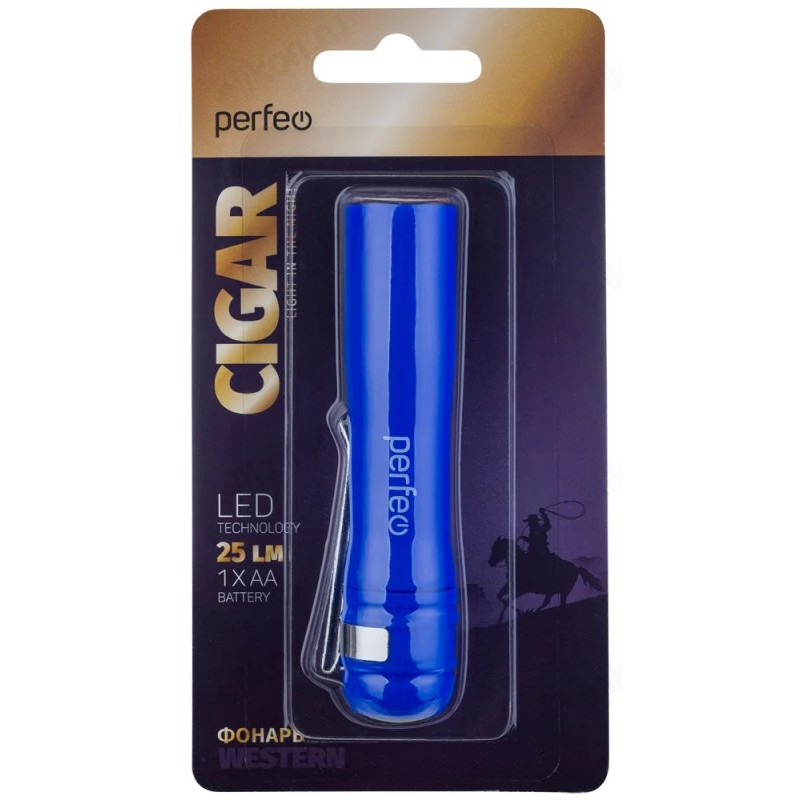 Фонарь Perfeo "Cigar" 0,5Вт-LED, синий, 25LM, 1*АА, 1 режим