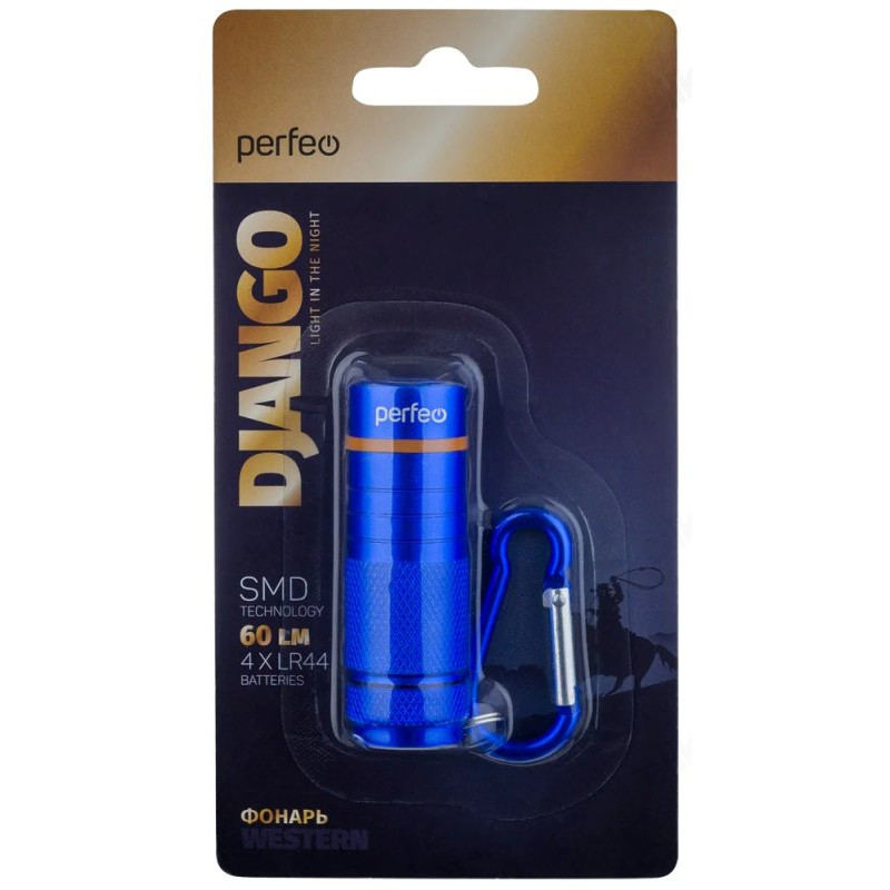 Фонарь Perfeo "Django" светодиодный 0,5Вт, 60LM, 4*LR44, 1 режим, брелок, синий