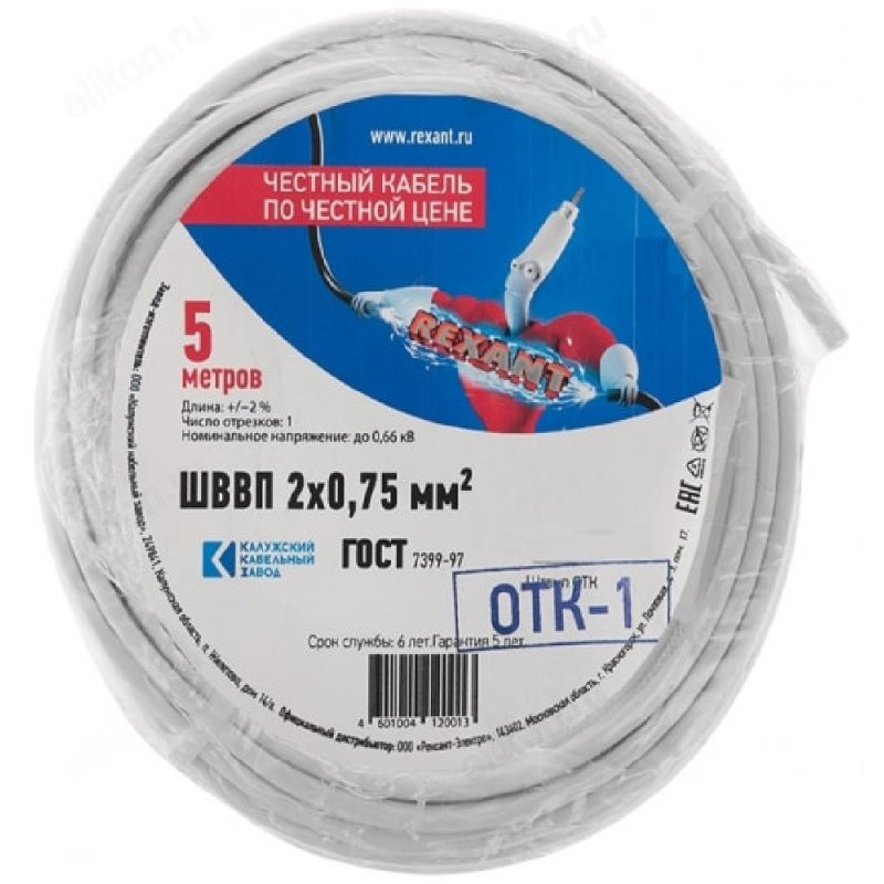 Провод ШВВП Rexant 2х0,75 5м 01-8086-5