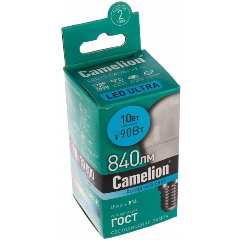 Лампа светодиодная LED E14 G45 10W 4K Camelion Шар 845