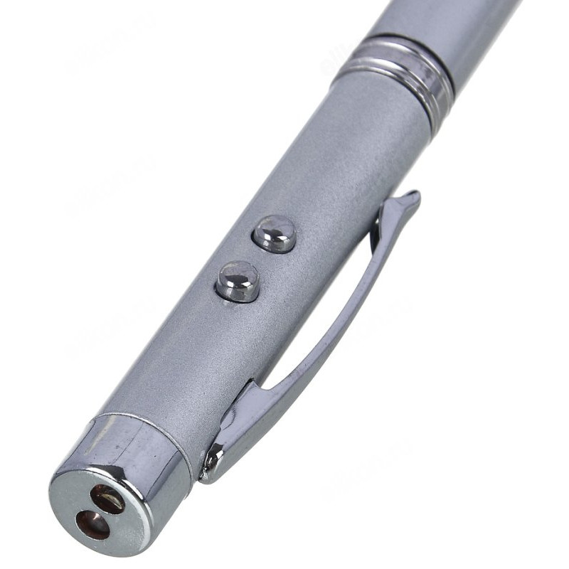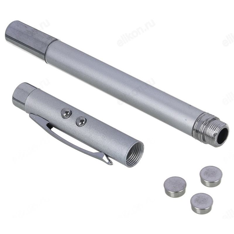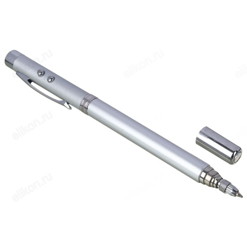 Ручка оснащена фонариком 1LED и красным лазером с отдельными кнопками включения.