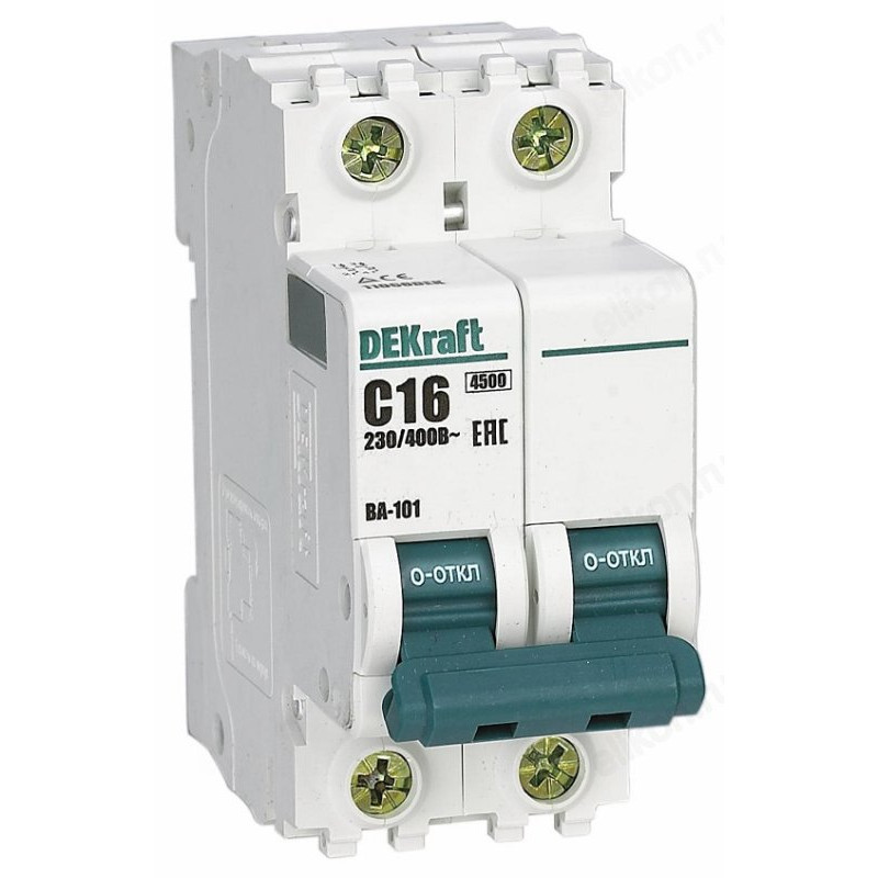 Автоматический выключатель серии ВА-101 DEKraft; 1P; номинальный ток 16 А; характеристика С; отключающая способность 4, 5 кА. Новый механизм расцепления мгновенно разрывает цепь при возникновении аварии. 5 монолитных заклепок повышают прочность корпуса аппарата. Сплошная лицевая панель обеспечивает безопасность эксплуатации аппарата. Боковые каналы охлаждения повышают стабильность работы при высоких температурах окружающей среды. Полностью автоматизированный контроль качества производства.