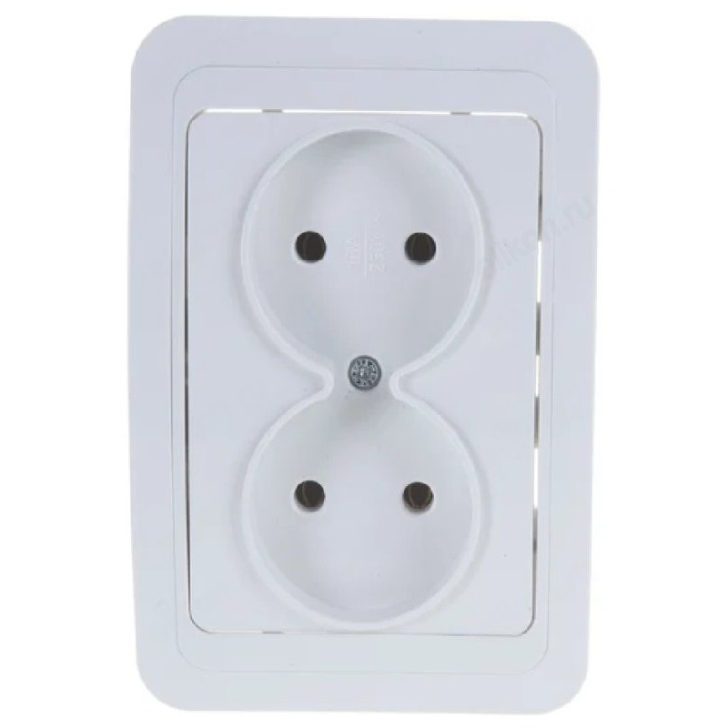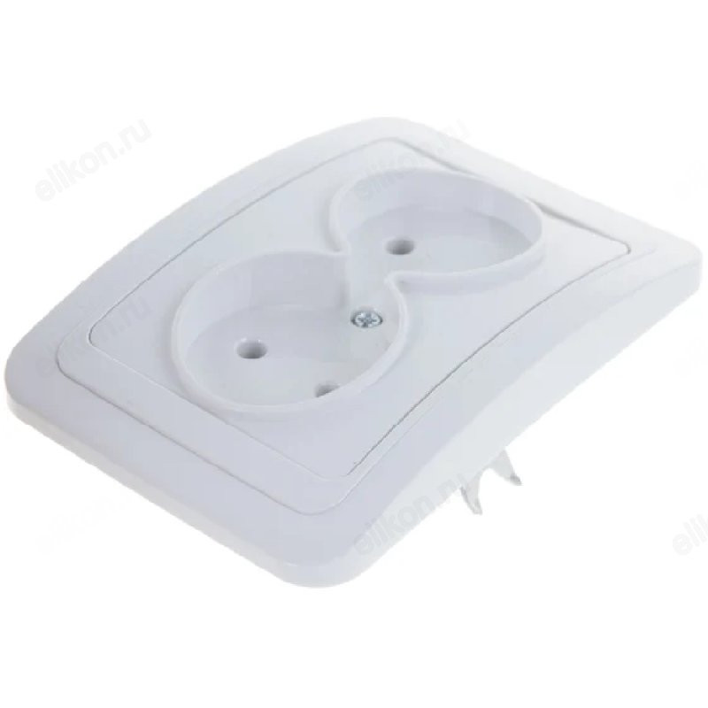 Розетка двойная CLASSICO белая 2102, 16 Ампер имеет корпус из керамики и имеет 2 поста для подключения бытовых приборов.