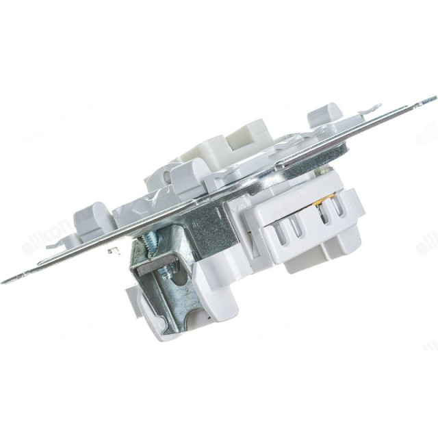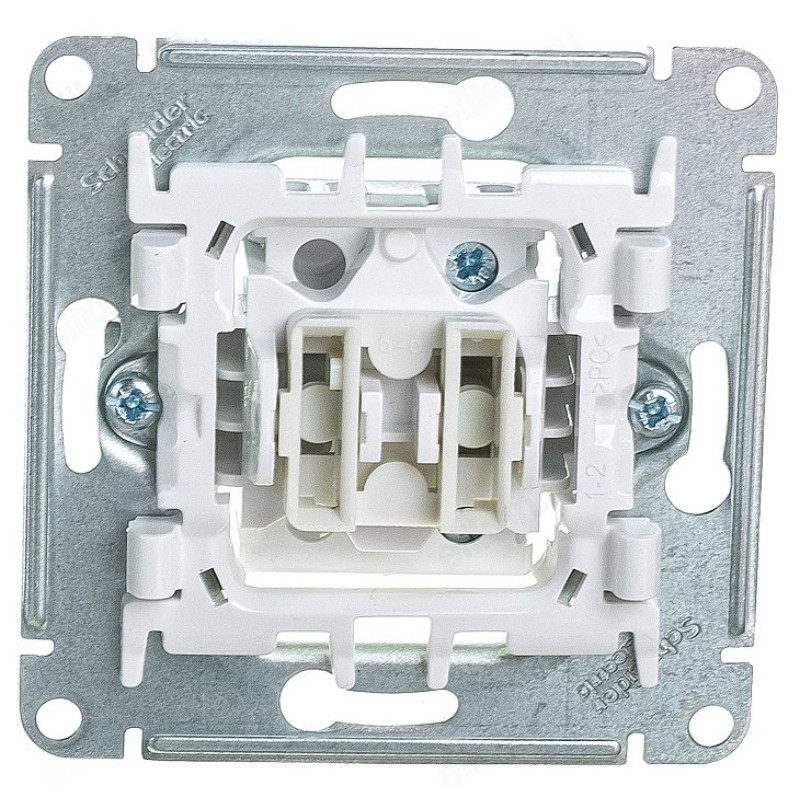 Встраиваемый одноклавишный выключатель выполнен из пластика, механизм выключателя с накладкой.