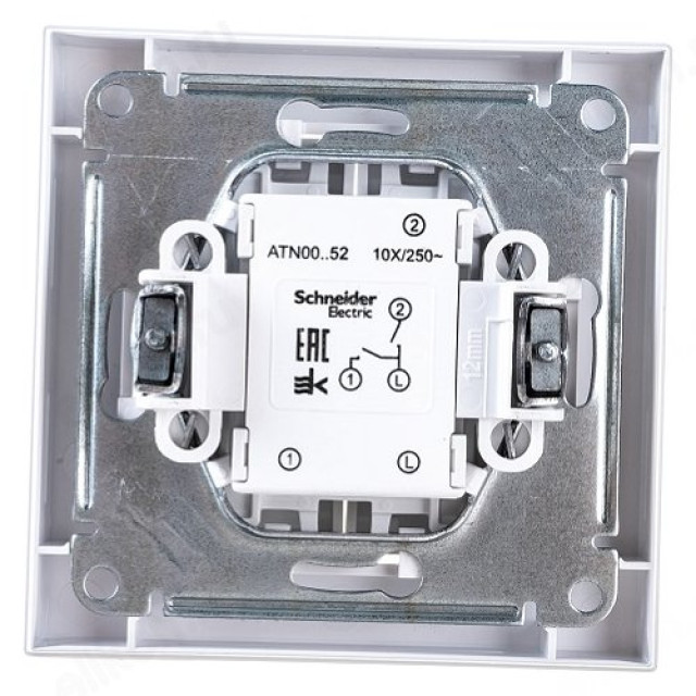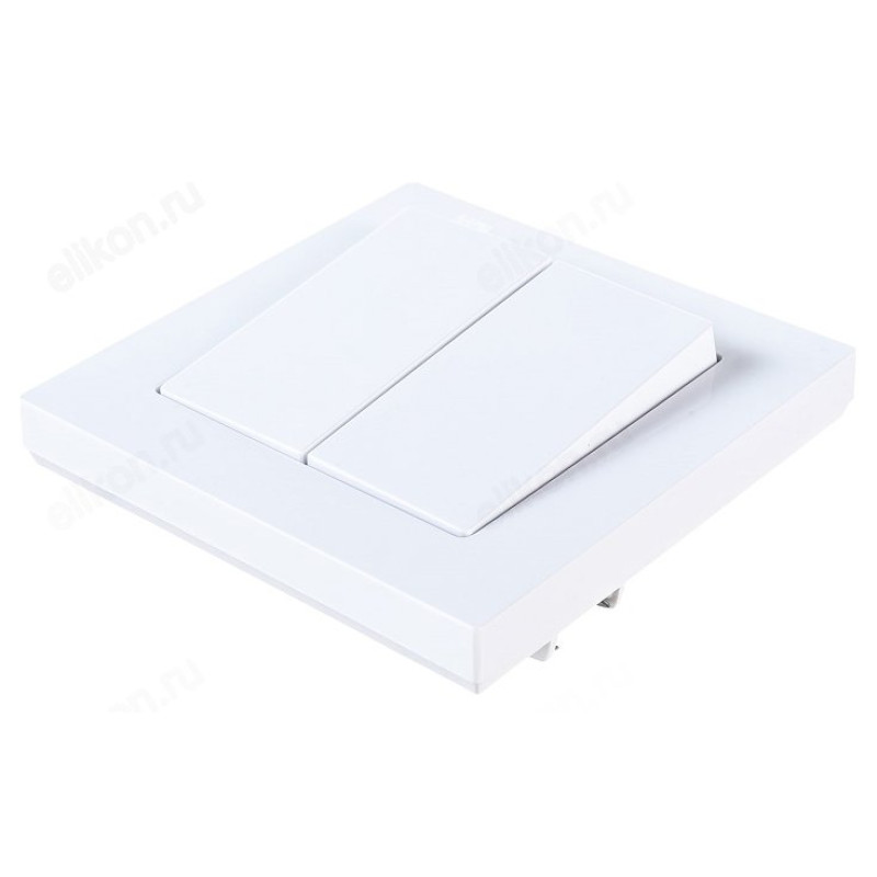 Встраиваемый двухклавишный выключатель выполнен из пластика.
