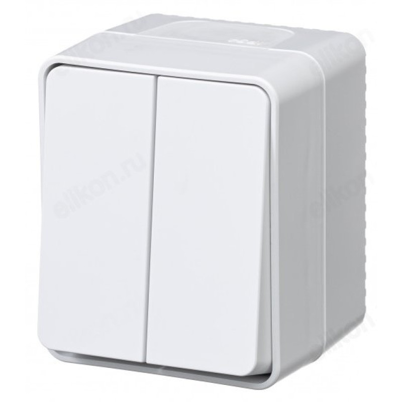 Выключатель 2-клавишный для открытого монтажа.