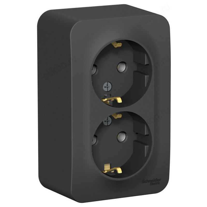 Розетка наружная 2-ая с/з, без шторок SE Blanca 16А, 250В, изолир. пластина, Антрацит