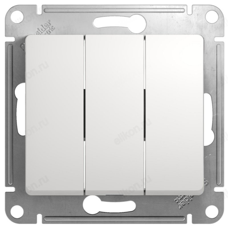 Механизм Schneider Electric Glossa выключателя 3-клавишного подходит для сетей 250 В, на ток 10 А.