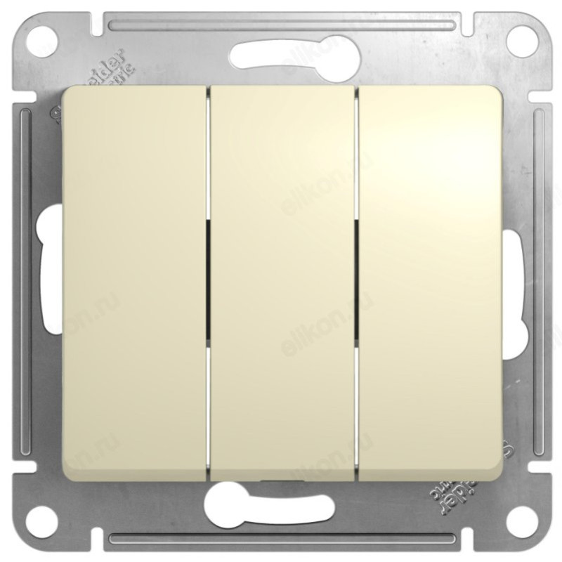Механизм Schneider Electric Glossa (цвет бежевый) выключателя 3-клавишного подходит для сетей 250 В, на ток 10 А.